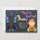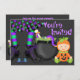 Convite de 1º Aniversário de Halloween Personalizado Fofo para Meninos e Meninas. Apresenta um bebê fofo em um traje de abóbora com pernas de bruxa da mamãe e um caldeirão assustador.
