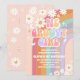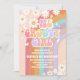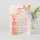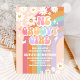 Celebre o marco do seu pequeno com este convite de primeiro aniversário retrô inspirado e groovy. Com cores pastel de arco-íris, margaridas divertidas, borboletas, corações e sinais de paz, este design alegre define o tom perfeito para uma festa divertida e vibrante. A tipografia em negrito e os detalhes caprichosos tornam fácil personalizar enquanto cria uma lembrança memorável. Ideal para temas boho, retrô e flower power, este convite traz paz, amor e alegria para a sua celebração.