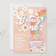 Celebre o marco do seu pequeno com este convite de 1º aniversário inspirado no estilo retrô! Com um fundo cor de pêssego com margaridas alegres, borboletas, arco-íris e uma van florido, este design captura a diversão e o espírito livre dos anos 60. Perfeito para um tema de festa descolado, este cartão personalizável facilita o compartilhamento dos detalhes do evento com familiares e amigos. Adicione o nome do seu filho e as informações da festa para criar um souvenir único que espalha paz, amor e alegria.
