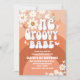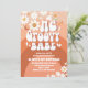 Celebre o marco do seu pequeno com este convite de aniversário de 1º ano retrô e descolado! Com ondas de arco-íris em laranja e vermelho ousados, margaridas alegres, corações, borboletas e sinais de paz, este design irradia charme inspirado nos anos 70. A tipografia caprichosa e os motivos alegres definem o tom perfeito para uma festa divertida e vibrante. Personalize com o nome da criança, data e detalhes para criar um souvenir único que os convidados vão adorar. Perfeito para celebrações temáticas hippie, boho ou flower power.