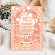 Celebre o marco do seu pequeno com este convite de 1º aniversário retrô inspirado, apresentando um fundo cor de pêssego, detalhes em arco-íris e uma van hippie florida. O design divertido inclui sinais de paz, corações e estrelas em um estilo groovy dos anos 60, perfeito para um tema de festa divertido e nostálgico. Personalize com os detalhes do seu evento para criar um souvenir único que define o tom para uma celebração alegre. Este convite vibrante é ideal para aniversários de meninas, festas retrô ou qualquer evento com um toque boêmio.
