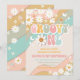 Convite de 1º Aniversário Groovy Rainbow Daisy