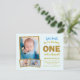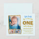 divertido convite de primeiro aniversário azul e dourado PRIMEIRO e rockeando!