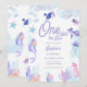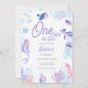 Um convite de aniversário sob o mar com aquarela suave, projetado para uma celebração de primeiro aniversário com detalhes lúdicos do oceano e um visual atemporal.