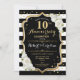 Design elegante rústico com listras pretas e brancas, dourado brilhante falso e rosas brancas.