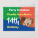convite para uma festa de aniversário especial com nome e número de anos. Convite de postcard para uma festa de 14 anos. Adicione sua própria foto e redimensione conforme necessário.