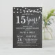 Convite de 15º Aniversário de Casamento. Fundo de Quadro-negro. Luzes de Corda. Preto e Branco. 1º, 2º, 3º, 4º, 5º, 10º, 15º, 20º, 25º, 30º, 35º, 40º, 45º, 50º, 55º, 60º, 65º, 70º, 75º, 80º, Qualquer Ano. Aniversário de Adulto. Festa de Aniversário de Homem ou Mulher. Para personalização adicional, clique no botão "Personalizar" e use nossa ferramenta de design para modificar este modelo.