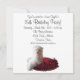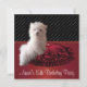 Convite de festa de 15 anos do cachorrinho maltês de ponto vermelho, preto e branco.