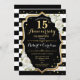 Convite de 15º Aniversário - Preto Branco Dourado