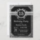 Convite de 15º Aniversário Preto e Brilho Prateado