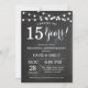 Convite de aniversário de casamento de 15 anos. Fundo de quadro-negro. Luzes de corda. Preto e branco. 1º, 2º, 3º, 4º, 5º, 10º, 15º, 20º, 25º, 30º, 35º, 40º, 45º, 50º, 55º, 60º, 65º, 70º, 75º, 80º, Qualquer Ano. Aniversário adulto. Festa de aniversário masculina ou feminina. Para personalização adicional, clique no botão "Personalizar" e use nossa ferramenta de design para modificar este modelo.