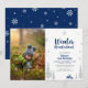 Celebre um dia especial para o seu querido com este lindo Convite de Aniversário Winter Wonderland! Este design apresenta gráficos de um cervo fofo e flocos de neve com tema de cores azul marinho e brilho prateado. Você pode adicionar a cor de fundo que desejar.