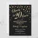 Design elegante com preto e dourado falso. Saúde por 20 Anos! Perfeito para uma festa elegante.