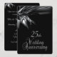 Convites de aniversário de casamento pretos únicos para uma recepção / festa de 25º aniversário de casamento. Frente e verso preto com texto prateado no verso dando um visual elegante a este convite de aniversário comemorativo.