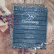 Com delicada confete de corações de amor prateados sobre um fundo de painéis de madeira de celeiro rústico azul. Personalize com as suas informações especiais de aniversário de prata de vinte e cinco anos em letras elegantes. Criado por Thisisnotme©
