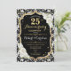 Convite de 25 Casamento de Aniversário. Design elegante e russa com cor damasco branca preta e ouro brilhante. Possui fonte de script e rosas brancas.