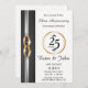 Cartaz de aniversário de casamento 25 com bandas de casamento duplas, preto, prata e pano de fundo elegante.