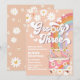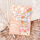 Celebre o dia especial dos seus pequenos com este convite de aniversário "Groovy Three" inspirado no estilo retrô. Com um fundo bege com margaridas, corações, borboletas e um arco-íris, este design captura a vibe divertida e livre dos anos 60. Uma van cor-de-rosa vintage com flores e um símbolo da paz adiciona um toque lúdico, tornando-o perfeito para uma celebração com tema boho ou hippie. Personalize com o nome da criança, detalhes da festa e crie uma lembrança que os convidados vão amar. Ideal para aniversários de crianças pequenas, este convite mistura nostalgia com charme moderno para tornar seu evento inesquecível.