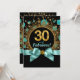 Convite de aniversário de trinta anos de mulher em azul turquesa e dourado com pontos de brilho e explosão de estrelas. Este lindo convite de aniversário em azul turquesa e dourado é facilmente personalizado para o seu evento, basta adicionar os seus detalhes no estilo de letra, cor e texto de sua escolha. Este é um design impresso sem jóias reais, brilho, laços, etc.