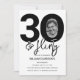 Convite de aniversário de 30 anos elegante e editável com 30 & sedutor, um grande 30 com uma foto dentro do zero, com fonte preta em um fundo branco clássico e um modelo de celebração de aniversário que é fácil de personalizar.