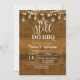 Cartão de convite de aniversário com luzinhas, cartão de convite de aniversário com fundo rústico e de madeira.