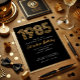 Convite de Aniversário de 40 anos em Preto e Dourado Falso de 1985