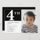 Convite para o 4.º aniversário do Elegante Black Chic Modern calliografia tipografia clássica elegante rapaz