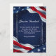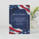 Envie seus convites do 4 de julho agora e celebre o Dia da Independência! estrelas e listras patrióticas são destaque na frente deste convite de papel básico e tem um verso branco. Basta escolher o menu de seleção à direita para alterar as suas informações. O verso é em branco para texto adicional, se necessário, para as suas direções de condução. Personalize ainda mais este cartão escolhendo papel, texto, cores, etc.