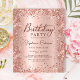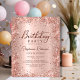 Convites de festa de 50º aniversário com brilho e metálico rosa dourado elegante e moderno econômico. Este design de cartão feminino adulto apresenta caligrafia estilosa manuscrita, fundo metálico falso rosa dourado ou rosa bege com moldura de brilho solto. Fácil de personalizar, perfeito para qualquer idade.