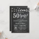 Convite de 50º Aniversário de Casamento. Fundo de Quadro de Giz. Luzes de Corda. Preto e Branco. 1º, 2º, 3º, 4º, 5º, 10º, 15º, 20º, 25º, 30º, 35º, 40º, 45º, 50º, 55º, 60º, 65º, 70º, 75º, 80º, Qualquer Ano. Aniversário de Adulto. Festa de Aniversário de Homem ou Mulher. Para personalização adicional, clique no botão "Personalizar" e use nossa ferramenta de design para modificar este modelo.