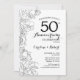 Convite de Aniversário de Casamento de 50 anos Preto Branco Floral. Design moderno minimalista com desenhos de contorno botânico e fonte de letra script. Cartão de convite elegante perfeito para uma celebração sofisticada. Pode ser personalizado para qualquer ano de casamento. Convites impressos da Zazzle ou modelo digital para impressão instantânea.