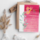Celebre um 50º aniversário fabuloso com este convite de aniversário floral elegante, apresentando um fundo de aquarela suave em rosa rico, um script com efeito dourado brilhante e sutilhas botânicas delicadas. O design destaca uma flor graciosa com detalhes cintilantes, tornando-o perfeito para uma celebração de aniversário clássica e moderna.