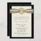 Convite de aniversário de casamento de cinquenta anos elegante feito em creme, preto e dourado. Um fundo em camadas de creme e preto, com gráficos de uma linda fita de cetim cor de champanhe no topo. Uma área de texto emoldurada em tom dourado decorativo redondo fica, no topo, da faixa e tem texto que diz 50º. Personalize todo o texto para atender às necessidades da sua festa. Um convite de aparência muito elegante e formal.