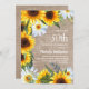 Convite de festa de 50º aniversário para mulheres com girassóis amarelos e marrons rústicos e margaridas brancas com lindas folhas verdes em estilo de sacaria. Entre em contato conosco para obter ajuda com personalização ou para solicitar produtos correspondentes.
