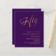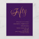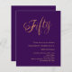 Um convite moderno e na moda para uma festa de aniversário 50ª. Um fundo de cor púrpura e a palavra Cinquenta escrita com letras elegantes e grandes em dourado falso. Personalize e adicione um nome e detalhes da parte. 1 folha = 1 convite impresso de borda a borda.
