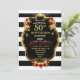 Convite de 50 de aniversário preto, branco e Doura