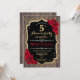 Aniversário de 5 Convocação Convidar a elegante madeira marrom-escura design, rustica, com dourado brilhante falso e rosas vermelhas.