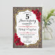 Aniversário de 5 Convocação Convidar a elegante madeira marrom-escura design, rustica, com dourado brilhante falso e rosas vermelhas.