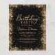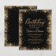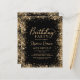 Convites de festa de 60 anos com brilho dourado e preto elegantes e modernos. Este design de cartão feminino adulto apresenta caligrafia estilosa e manuscrita em dourado sobre fundo preto com uma borda de brilho solto. Fácil de personalizar, perfeito para qualquer idade.