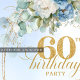 Convite de 60º Aniversário com Peônias Azuis e Euc