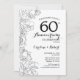 Convite de Aniversário de Casamento de 60 anos Floral Preto e Branco. Design moderno minimalista com desenhos de contorno botânico e fonte de letra script. Cartão de convite elegante perfeito para uma celebração sofisticada. Pode ser personalizado para qualquer ano de casamento. Convites impressos da Zazzle ou modelo digital para impressão instantânea.