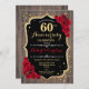 60º Convite de Aniversário de Casamento. A rustica elegante convida o cartão para o padrão de madeira castanha escura, com ouro e rosas vermelhas brilhantes falsos. Convites impressos ou modelo digital. Perfeito por um na moda de 60 anos de celebração de casamento.