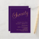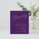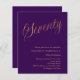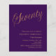 Um convite moderno e na moda para uma festa de aniversário 70. Um fundo de cor púrpura e a palavra Setenta escrita com letras elegantes e grandes em dourado falso. Personalize e adicione um nome e detalhes da parte. 1 folha = 1 convite impresso de borda a borda.