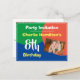 convite para uma festa de aniversário especial com nome e número de anos. Cartão postal de convite de festa para uma criança de 8 anos. Adicione sua própria foto e redimensione conforme necessário.