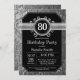 Convite de 80º Aniversário Preto e Brilho Prateado