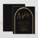 Um convite elegante de 80. Um fundo preto com um arco de ouro na frente. 1 folha = 1 convite impresso de borda a borda.