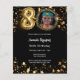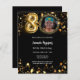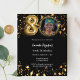 Um convite para fotos moderno e na moda para uma festa de aniversário 80. Um fundo preto clássico, decorado com estrelas ouros. Personalize e adicione os detalhes da sua festa. 1 folha = 1 convite impresso de borda a borda.
