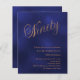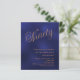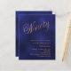 Um convite moderno e na moda para uma festa de aniversário 90. Um fundo azul marinho, incolor e a palavra Ninety escrita com letras elegantes grandes em dourado falso. Personalize e adicione um nome e detalhes da parte. 1 folha = 1 convite impresso de borda a borda.