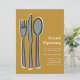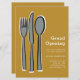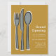 Um convite moderno da Grand Open, com uma ilustração divertida dos utensílios, para anunciar a abertura do seu restaurante.