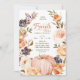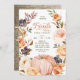 Este convite para apresentação de amigos tem uma bonito borda floral de abóbora de cor d'água. As cores utilizadas incluem o verde-oliva, a ameixa, a ferrugem e o laranja. No topo está um texto estilizado em ferrugem que diz "Obrigados dando". Os detalhes do convite são em verde-oliva e são personalizáveis. Tudo é mostrado em um fundo branco nítido. A parte de trás do convite tem um fundo de tinta estalado com um buquê floral que coordena com as cores rústicas na frente. Uma forma excelente de convidar convidados para o seu janto de Ação de Graças. Este convite coordena-se com a coleção de Abóbora Floral de Obrigados de Dar.